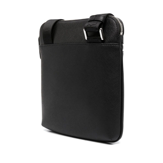Emporio Armani ASV regenerated Saffiano leather flat shoulder bag with eagle plate