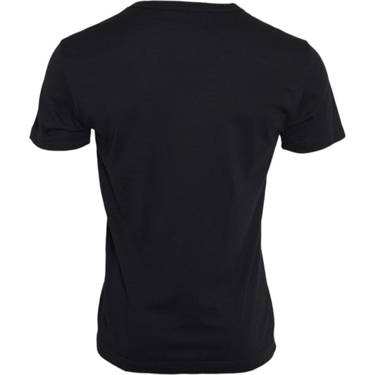 تي شيرت دولتشي آند غابانا أسود قطني بأكمام قصيرة وسلسلة فضية