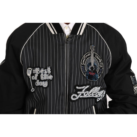 سترة بومبر سوداء أنيقة مزينة بالترتر من دولتشي آند غابانا