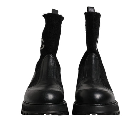 Dolce & Gabbana Black DG Logo Horse Sock Ankle Boots Shoes