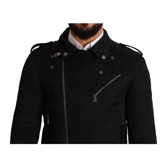 جاكيت بايكر من دولتشي آند غابانا بسحاب كامل من قماش مطرز باللون الأسود