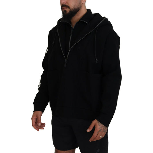 سترة رجالية مطبوعة بغطاء رأس من القطن الأسود من Dsquared²