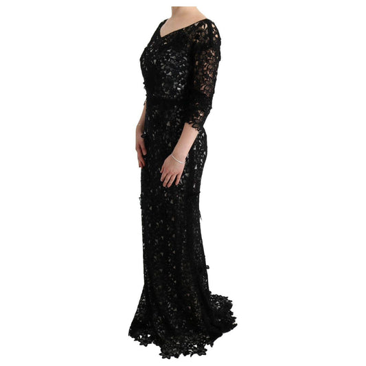 فستان ماكسي أسود أنيق من دولتشي آند غابانا مع تطريزات زهرية