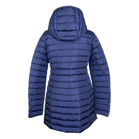 أضف سترة زرقاء أنيقة منفوخة مع غطاء للرأس