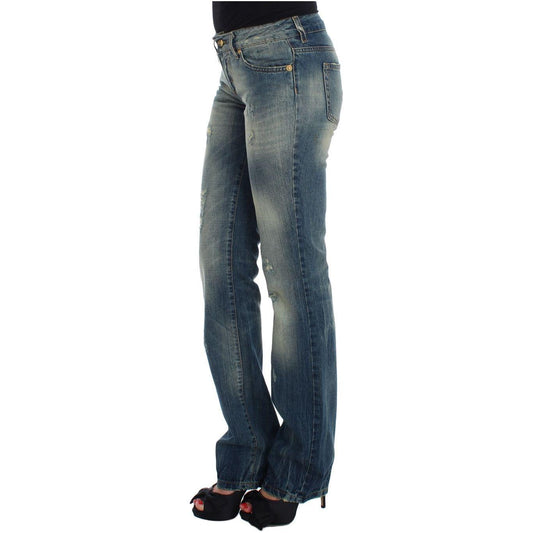 بنطلون جينز أزرق اللون من كافالي شيك بقصّة بوت كات