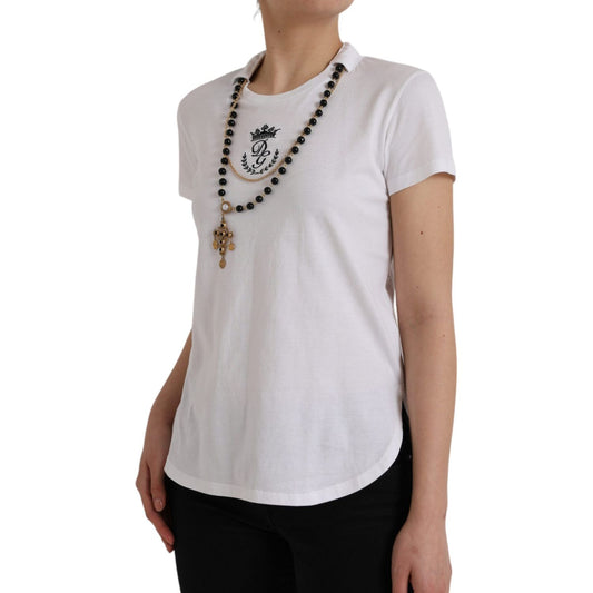 تي شيرت Dolce & Gabbana أبيض من القطن المطاطي باللون الأسود HOT Crystal