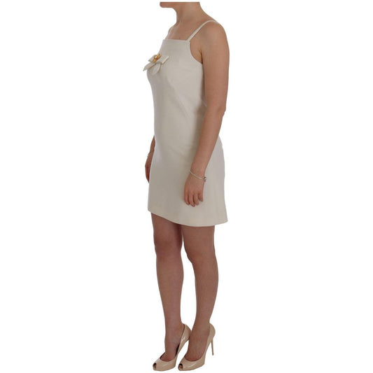 فستان دولتشي آند غابانا الأنيق المصنوع من الصوف الأبيض مع بروش ذهبي