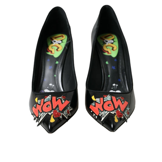 Dolce & Gabbana Black Leather WOW Patch Heels Pumps Shoes