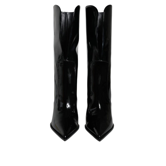حذاء Dolce & Gabbana أسود من الجلد اللامع بطرف مدبب للكاحل