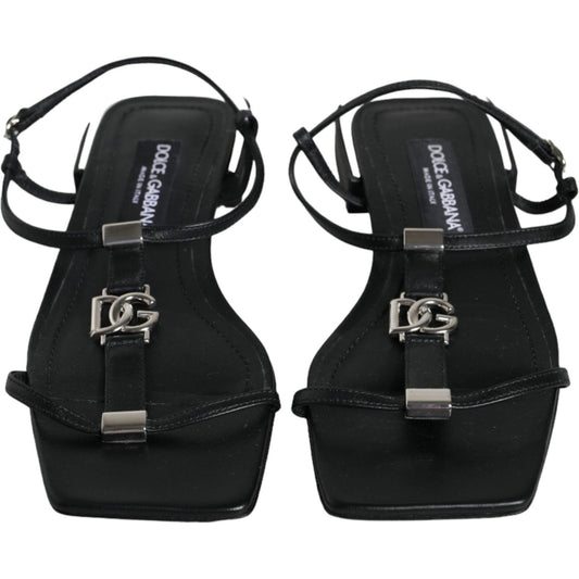 Dolce & Gabbana Black Keira Leather Faux Pearl Sandals Heels Shoes
