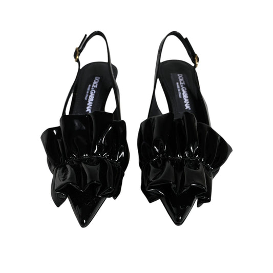 حذاء مفتوح من الخلف بكعب عالٍ من الجلد الأسود اللامع من دولتشي آند غابانا