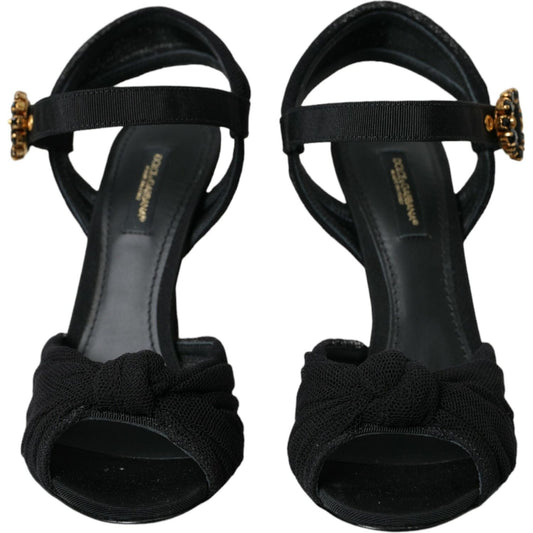 حذاء صندل بكعب عال من دولتشي آند غابانا باللون الأسود مزين بالترتر وحزام للكاحل