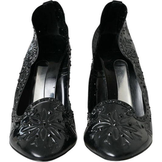 حذاء دولتشي آند غابانا الأسود المسطح ذو الكعب العالي والمزين بالكريستال