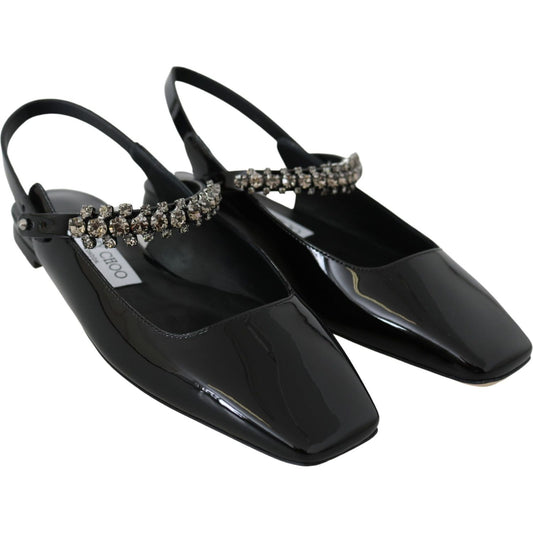 حذاء مسطح أنيق باللون الأسود اللامع من جيمي تشو مع لمسات من الكريستال