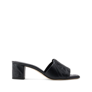 black calf leather embossed detail branded leather insole logo-embossed strap square open toe mid block heel Seal leather sandals Size and Fit - Heel 2,6 in / 6,5 cm