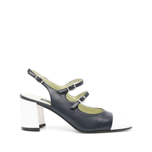 black/white nappa leather smooth grain round toe patent contrasting toecap double-strap design buckle-fastening ankle strap branded footbed 60mm patent block heel leather outsole Papaya leather slingback pumps Size and Fit - Heel 2,4 in / 6 cm
