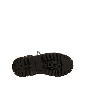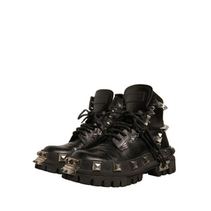 Dolce & Gabbana Black Leather Studded Trekking Boots Shoes