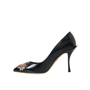 Dolce & Gabbana Black Leather WOW Patch Heels Pumps Shoes