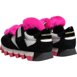 Dolce & Gabbana Black Pink Fur Embellished Sneakers Shoes