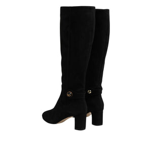 Dolce & Gabbana Black Suede Leather Knee High Boots Shoes