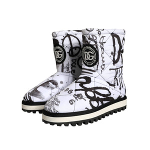 Dolce & Gabbana White Padded Logo Print Mid Calf Boots Shoes