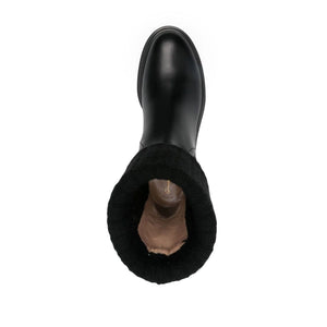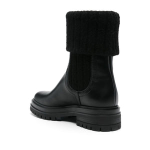 black calf leather smooth grain slip-on style 45mm low block heel folded edge ribbed knit detailing almond toe branded insole rubber sole Leather chelsea boots Size and Fit - Heel 1,6 in / 4 cm Platform 1 in / 2,5 cm