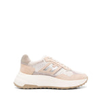 blush beige front lace-up fastening logo patch to the side logo-debossed tongue chunky sole Hi-Fi leather sneakers Size and Fit - Heel 2,6 in / 6,5 cm, Platform 1,2 in / 3 cm