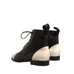 Sergio Rossi Black White Leather Lace Up Flats Ankle Boots Shoes