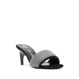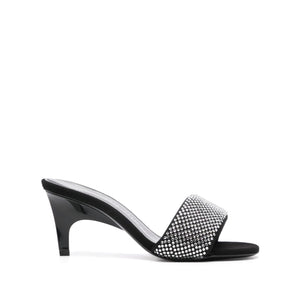 black crystal embellishment round open toe single arched strap open back branded leather insole 60mm mid sculpted heel leather sole slip-on style This piece comes complete with a protective dust bag. Rem strass embellished mules Size and Fit - Heel 2,4 in / 6 cm