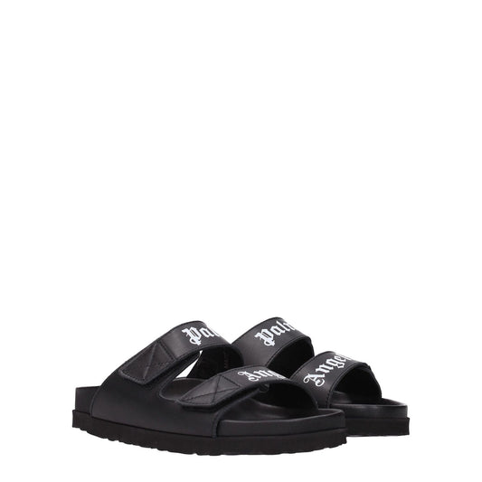 Palm Angels Black Leather Slippers
