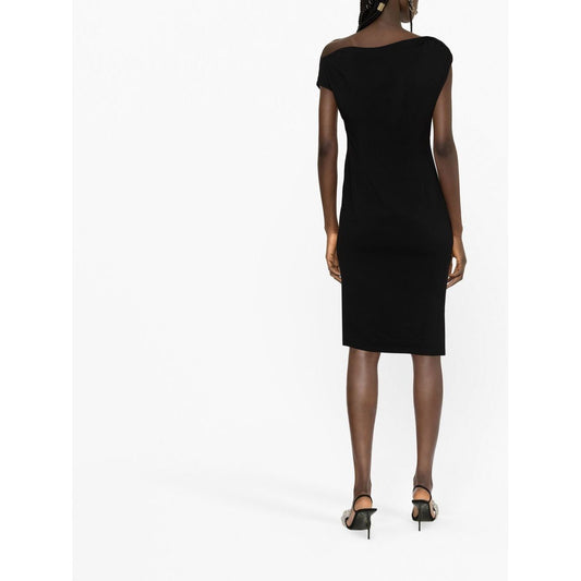 Alice Palmer Black Chainette Knit Striped Assymetrical Dress