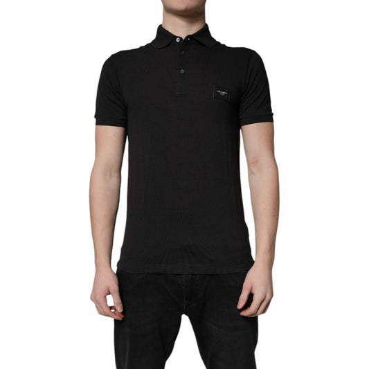 Dolce & Gabbana Dark Gray Logo Plaque Cotton Men Polo Shirt T-shirt