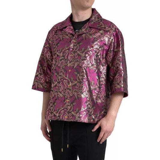Dolce & Gabbana Fuchsia Pink Floral Jacquard Button Down Shirt