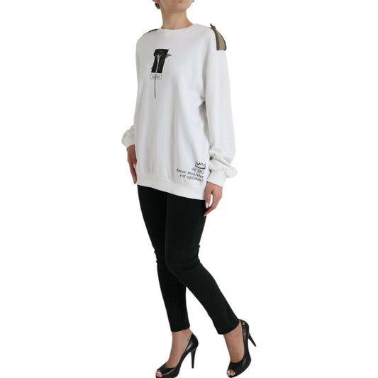 Dolce & Gabbana White Floral Cotton Crew Neck Pullover Sweater