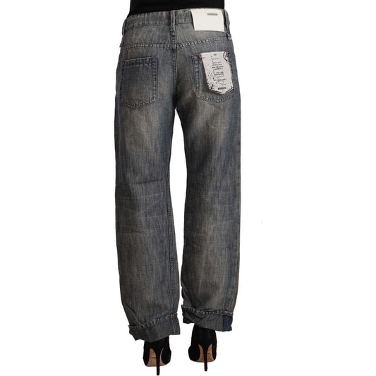 Ermanno Scervino Dark Blue Mid Waist Cotton Denim Straight Jeans