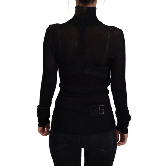 Dolce & Gabbana Black Turtleneck Form Fitting Pullover Sweater