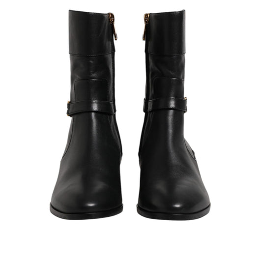 Dolce & Gabbana Black Leather Flats Logo Short Boots Shoes