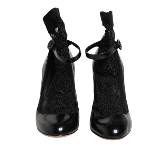 Dolce & Gabbana Black Leather Lace Socks Heels Pumps Shoes