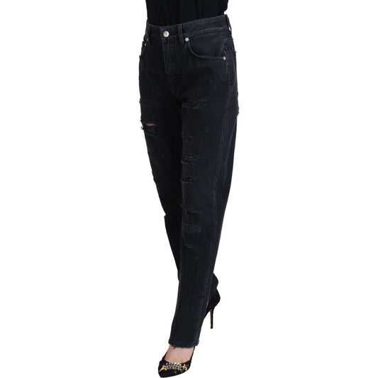 Dolce & Gabbana Black Cotton Tattered High Waist Denim Jeans