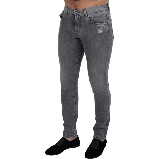 Dolce & Gabbana Gray Slim Fit Wash Stretch Cotton Denim Jeans