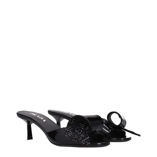 Prada Black Patent Sandals Ankle Strap Heels Leather