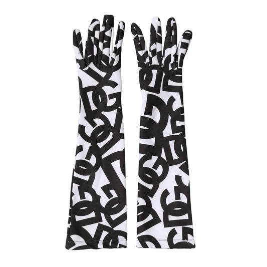 Dolce & Gabbana Gloves Black White DG Logo Elbow Length Mitten