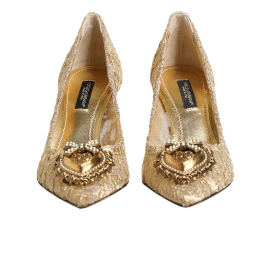 Dolce & Gabbana Gold Taormina Lace DEVOTION Pumps Shoes