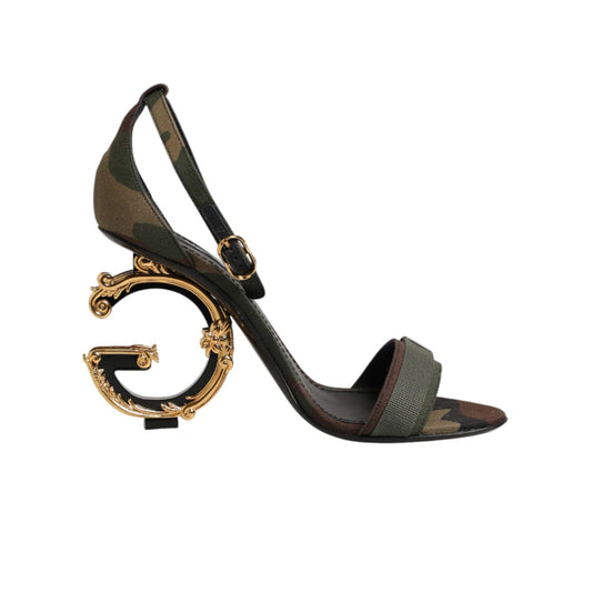 Dolce & Gabbana Multicolor DG Logo Heels Camouflage Sandals Shoes