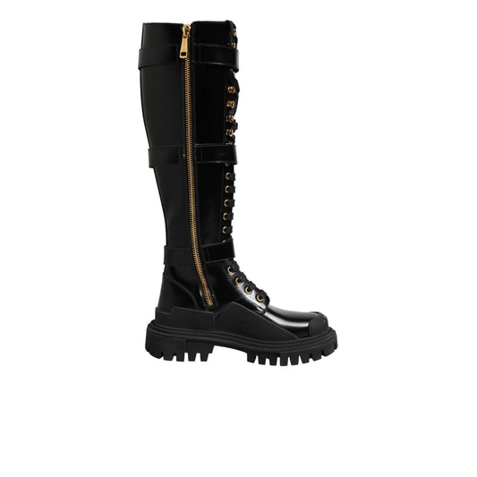 Dolce & Gabbana Black Buckle Embellished Knee High Boots Shoes