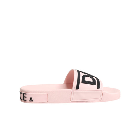 Dolce & Gabbana Pink Rubber Slides Sandals Beachwear Shoes