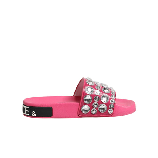 Dolce & Gabbana Pink Crystal Slides Sandals Beachwear Shoes