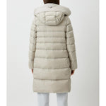 ADD Long light grey colored down jacket in water-repellent technical fabric, double-slider zipper closure , hooded collar, interior of 90% goose down and 10% duck down