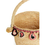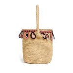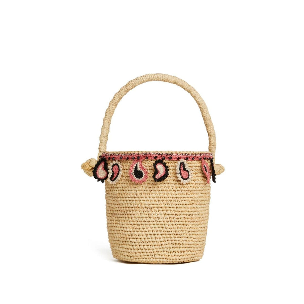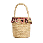 beige/multicolour raffia single top handle paisley motif appliqué detailing open top main compartment Paisley raffia bucket bag