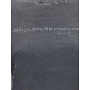 Alexander Wang’s cotton T-Shirt is a modern essential. The cropped model features a ribbed crew neck and stands out for the iconic logo printed on the front, which gives a recognizable and urban touch to the minimal style of the brand.